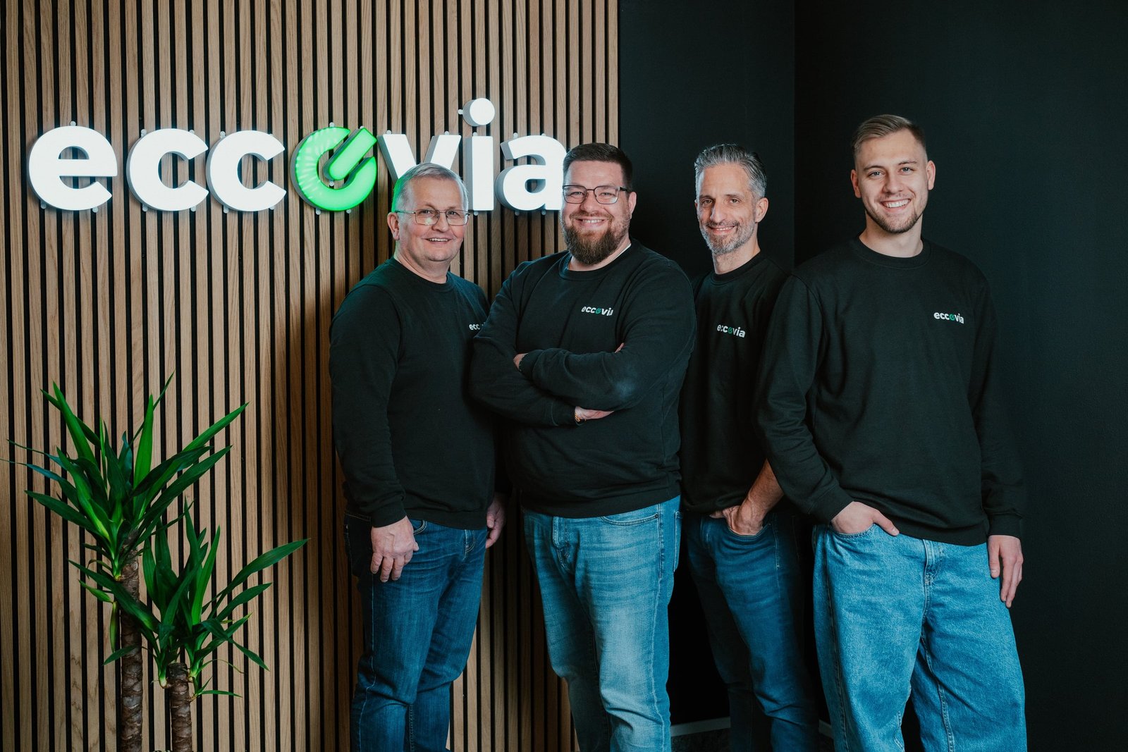 For brand partnerships, we display both our logo and our partner’s logo, separating them with the “icon” on graphic devices. The space between each logo and the “icon” should be half the clear space of eccovia’s logo. When adjusting the logo sizes, begin with the eccovia logo and then optically adjust and center the partner logo to achieve visual balance.